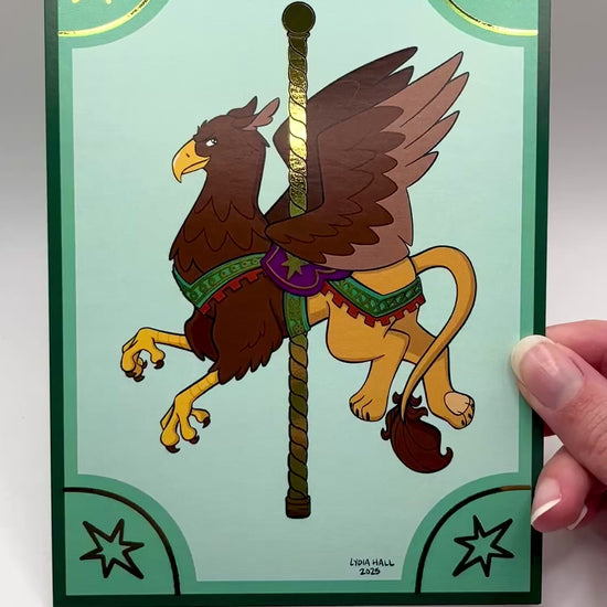 Mythical Carousel - Griffin - Gold Foil Art Print