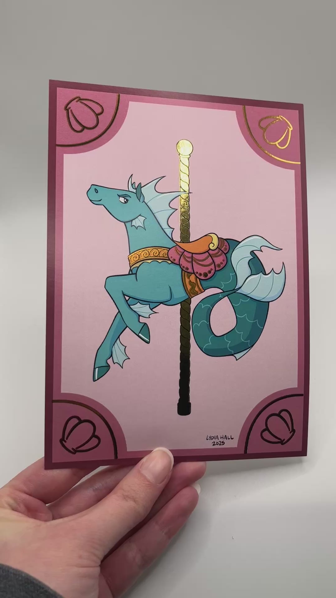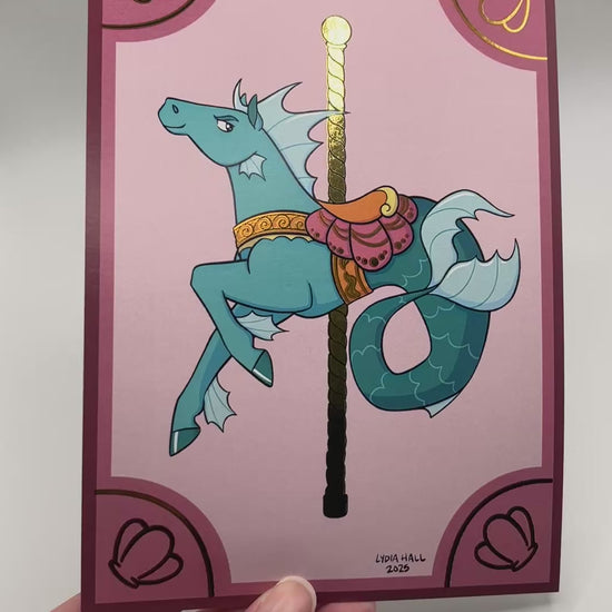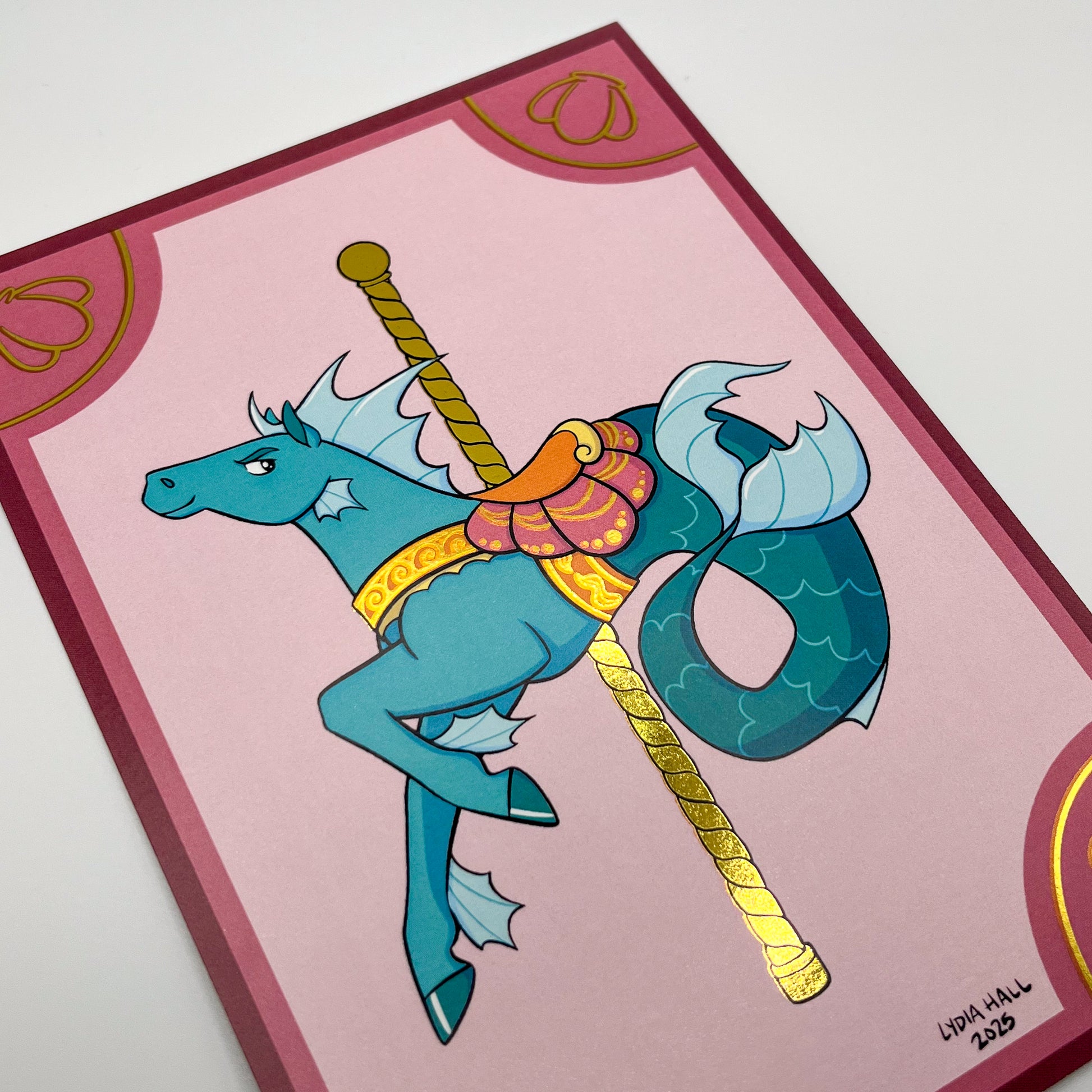 Mythical Carousel - Hippocampus - Gold Foil Art Print