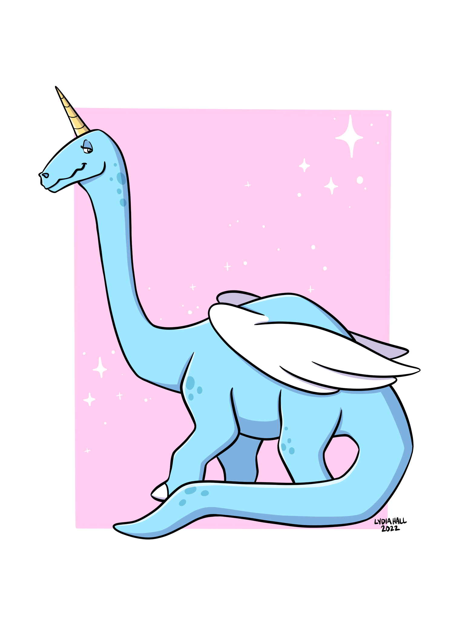 This is an updated digitally drawn version of my Brontosaurus Unicorn Pegasus!