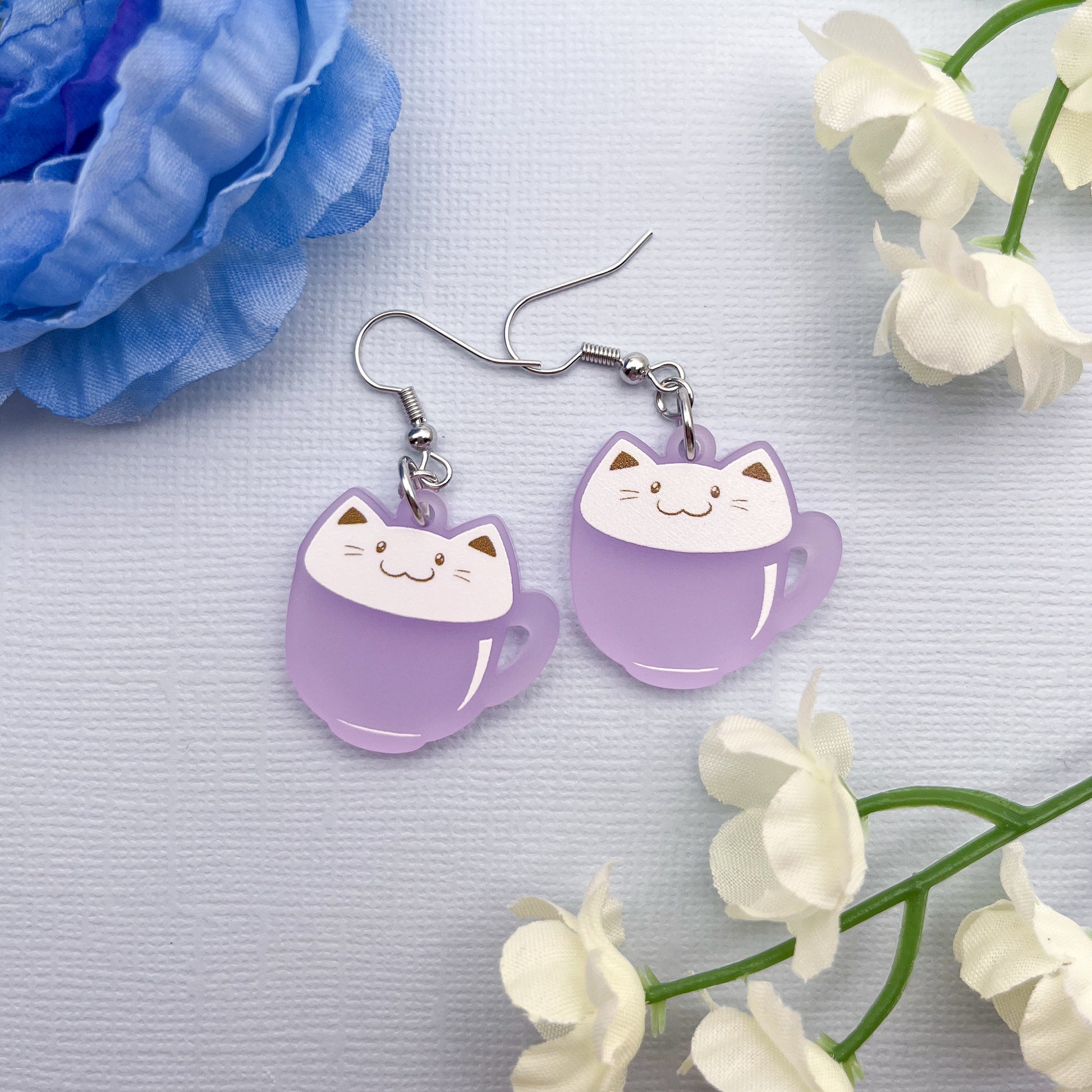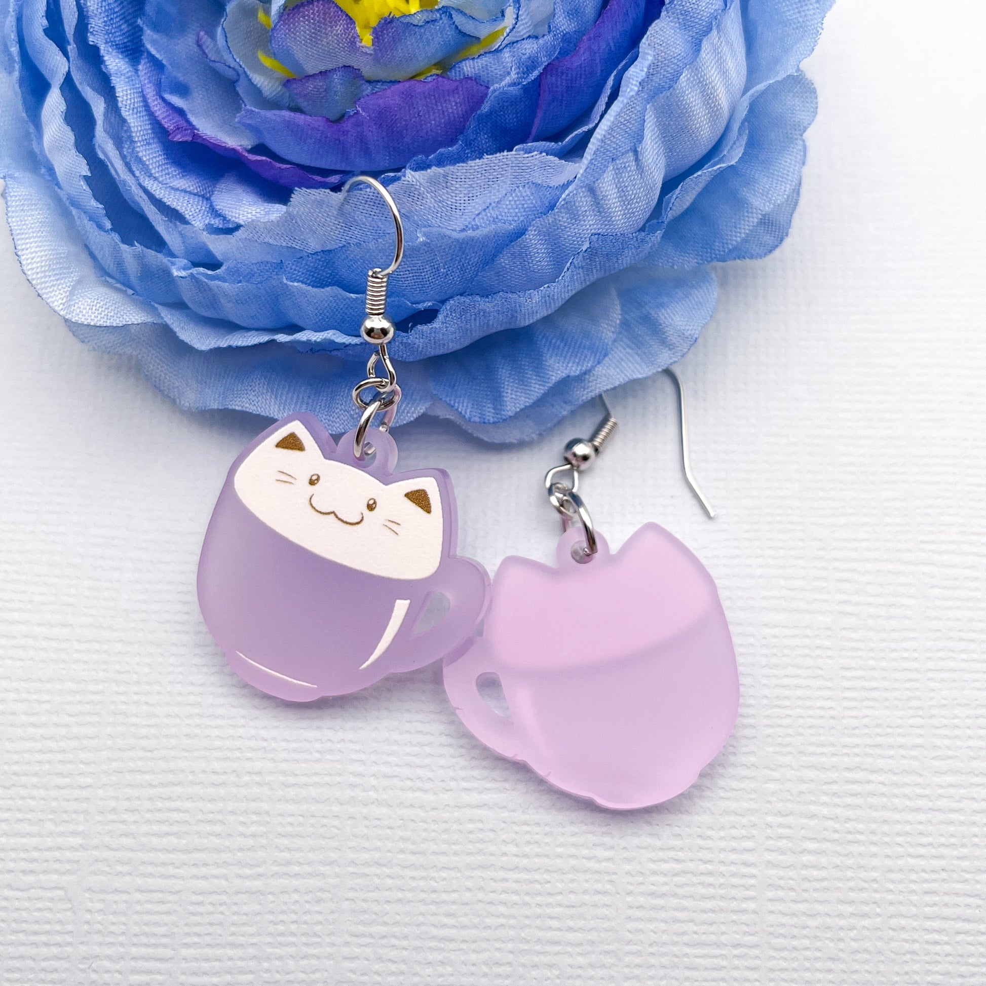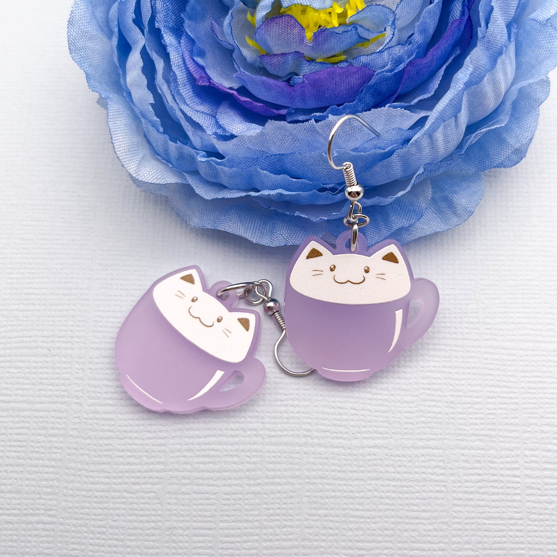 Latte Cat Earrings - Purple