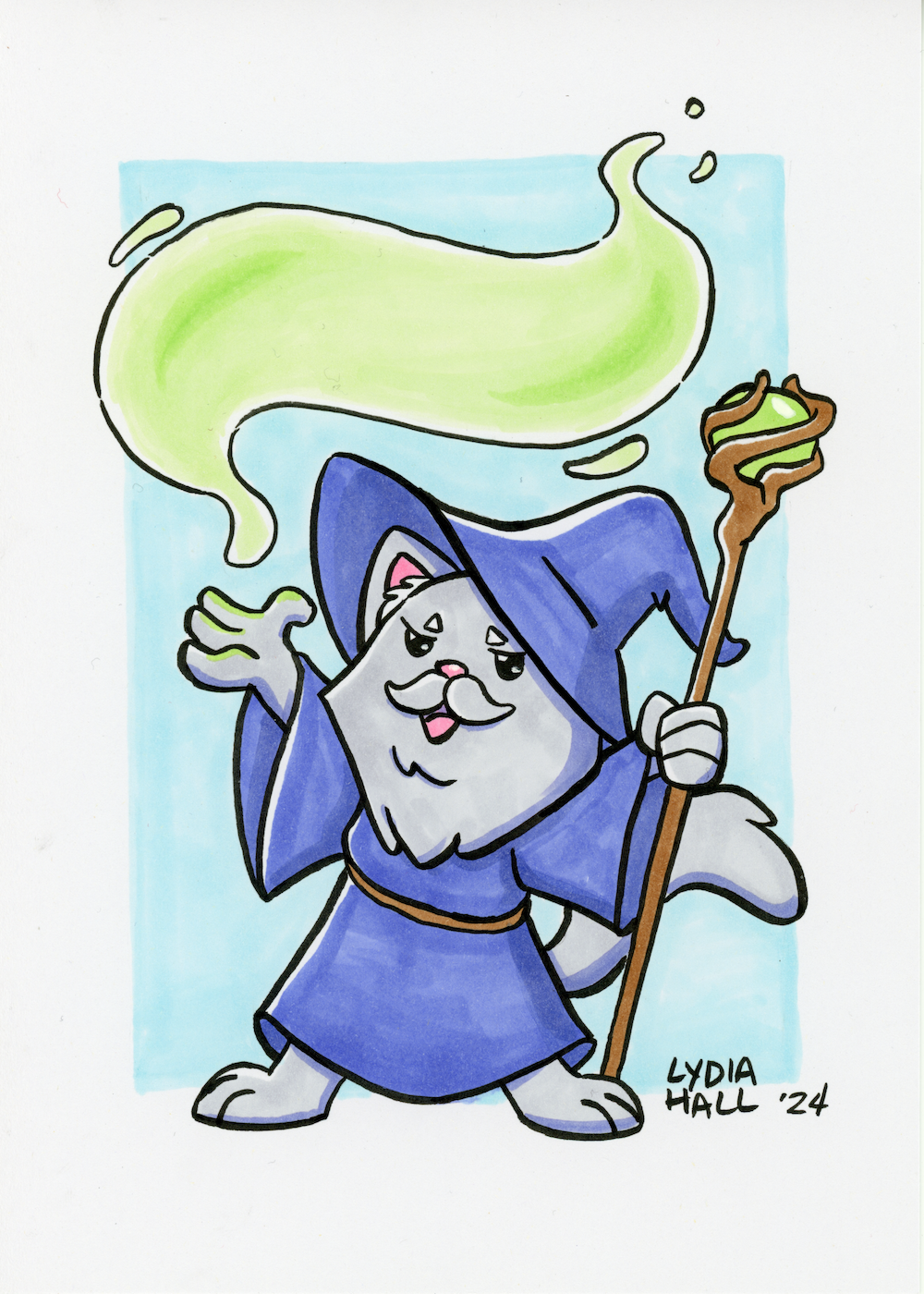 Original ink illustration of a wizard cat