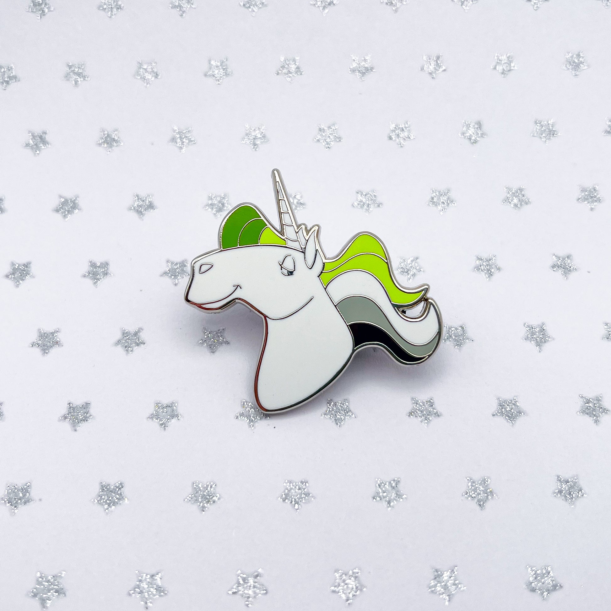 Show off your aro pride with this unicorn pin!