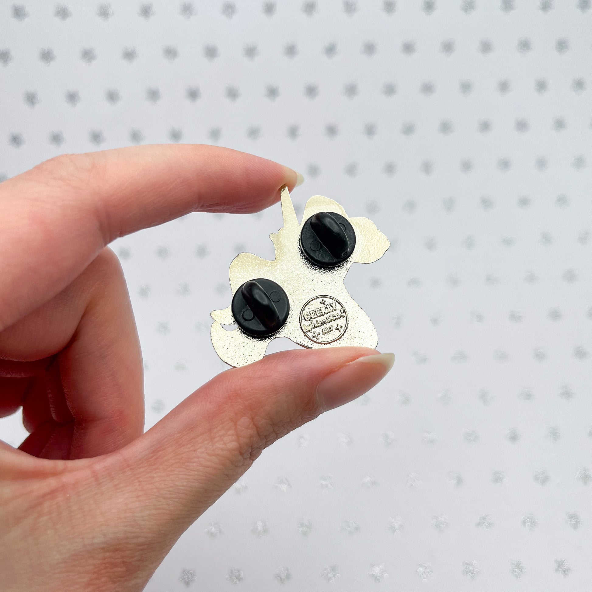 - 1.5 inch hard enamel pin with 2 rubber backs