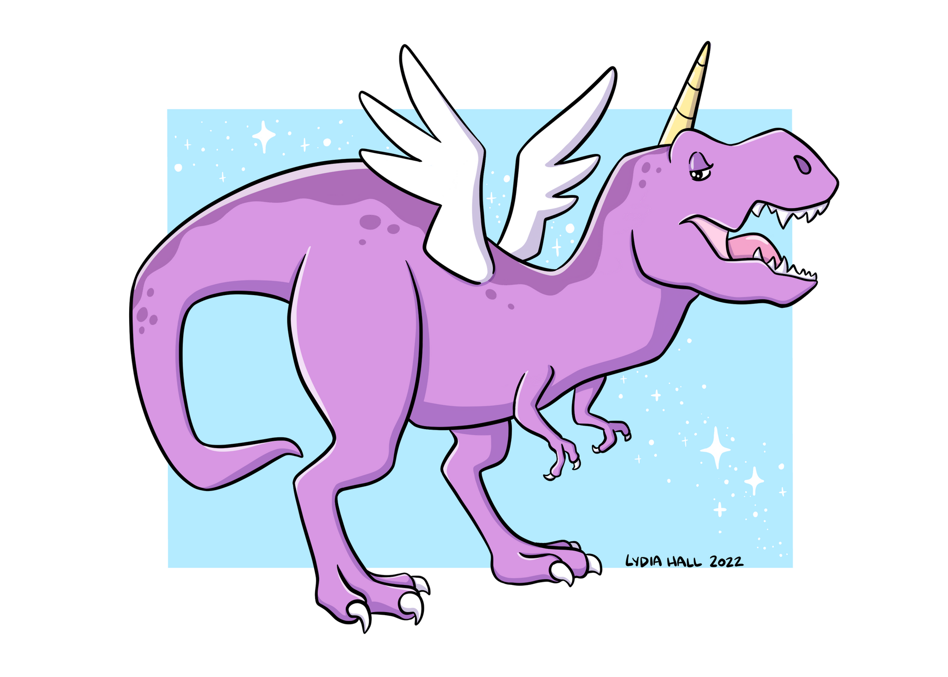 This is an updated digital art version of my T-Rex Unicorn Pegasus!