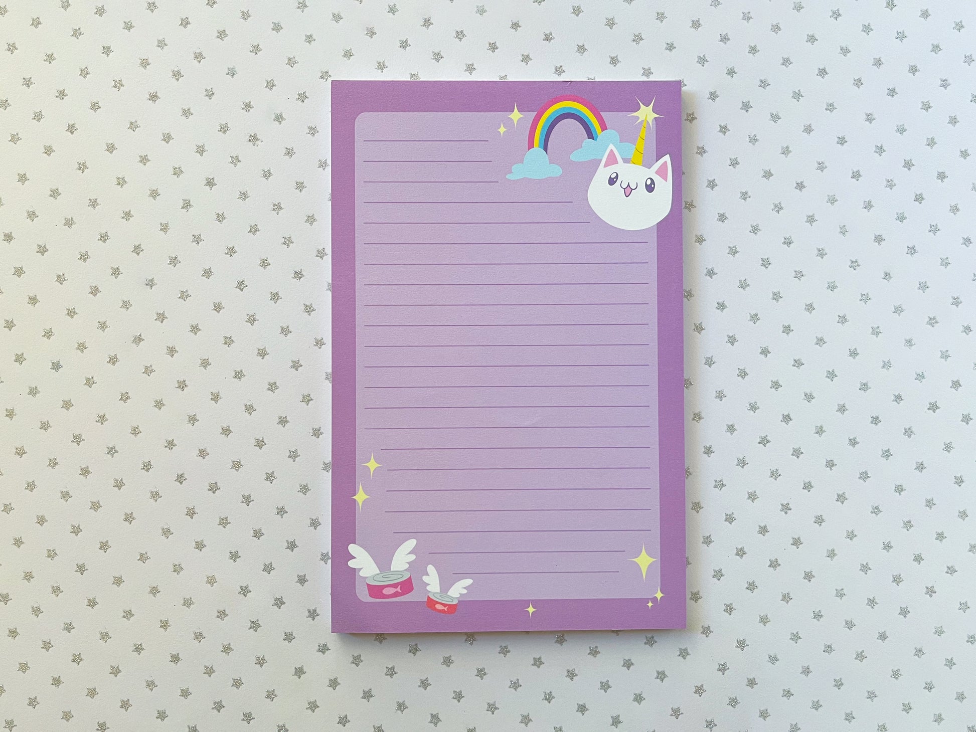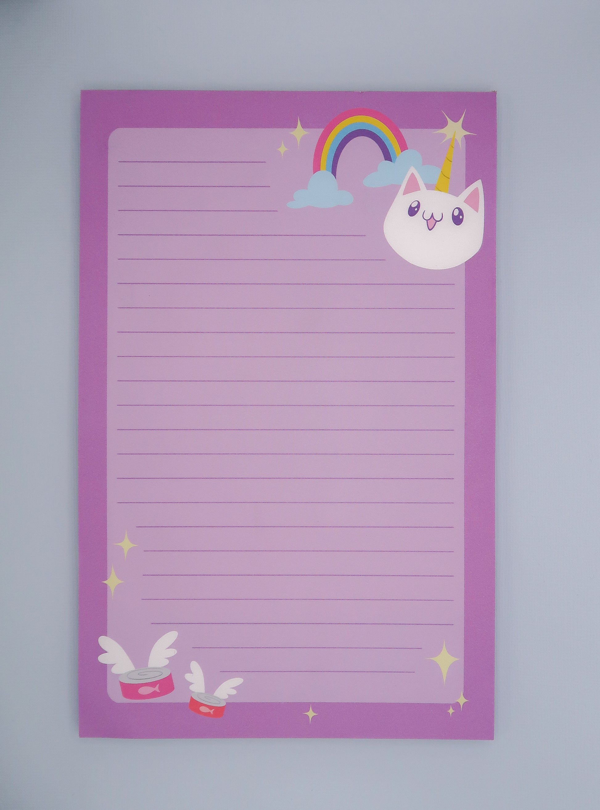 A fun, magical way to take notes. Notepads feature unicorn kitty.